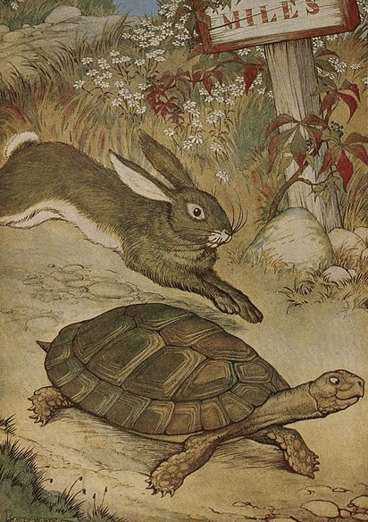 Do you know the famous fable of Esopo where a Hare ridicules a slow-moving Tortoise? Tired of the Hare’s arrogant behavior, the Tortoise challenges him to a race. The Hare soon leaves the Tortoise behind and, confident of winning, takes a nap midway through the race. When the Hare awakes however, he finds that his competitor, crawling slowly but steadily, has arrived before him.